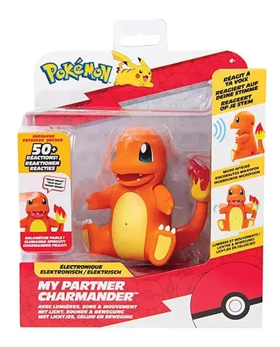 Brinque com Charmander de uma maneira totalmente nova! Meu parceiro Charmander possui um microfone embutido e tecnologia de sensor de toque que permite que você e ele se comuniquem como nunca antes. Com mais de 50 reações diferentes ao seu toque, sua voz e até mesmo música, veja Charmander ganhar vida enquanto sua cauda brilha, seus braços se movem e sua boca se move e brilha!