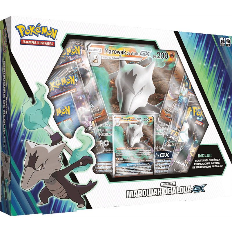 marowak de Alola É Amigo de Fantasmas e Mestre do Fogo e Está Pronto Para Enfrentar a Oposição! Este Poderoso Pokémon Empunha Um Bastão de Osso com Toda a Força de Um Pokémon-Gx. Esta Coleção Conta com Duas Versões Deste Pokémon-Gx, Uma Para o Seu Baralho e Outra Para a Sua Parede, Além de 6 Pacotes de Booster do Pokémon Estampas Ilustradas Para Aumentar a Sua Coleção. Acenda Chamas Fantasmagóricas com a Coleçãomarowak de Alola-Gx Agora Mesmo!