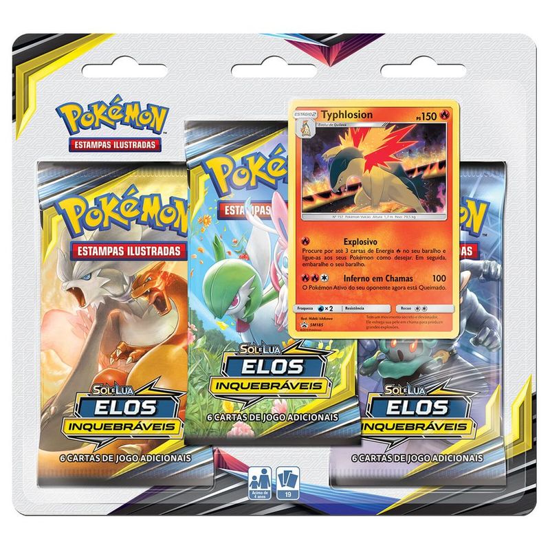 Pokemon Cartas Sol e Lua 10 Elos Inquebráveis - Typhlosion - Blister Triplo C/19 Cards da Copag É Ideal Para Crianças Acima de 4 Anos.