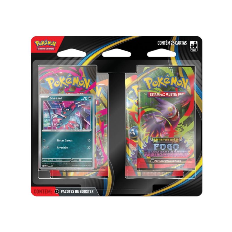 POKÉMON TCG BLISTER QUADRUPLO MEGAEVOLUÇÃO FOGO FANTASMAGÓRICO SNEASEL – COPAG