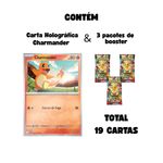 Conteúdo: 01 blister triplo Mega Evolução Heróis Excelsos Pokémon Trading Card Game, contendo 19 cartas, dentre elas 1 carta holográfica promocional Charmander.