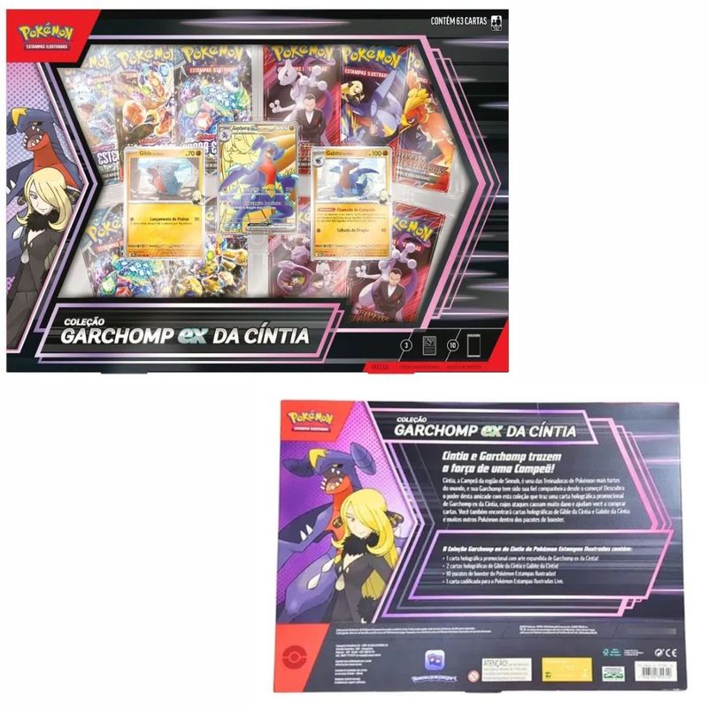 Cíntia , a Campeã da região de Sinnoh, é uma das Treinadoras de Pokémon mais fortes do mundo, e sua Garchomp tem sido sua fiel companheira desde o começo! Descubra o poder desta amizade com esta coleção que traz uma carta holográfica promocional de Garchomp ex da Cíntia, cujos ataques causam muito dano e ajudam você a comprar cartas. Você também encontrará cartas holográficas de Gible da Cíntia e Gabite da Cíntia e muitos outros Pokémon dentro dos pacotes de booster.