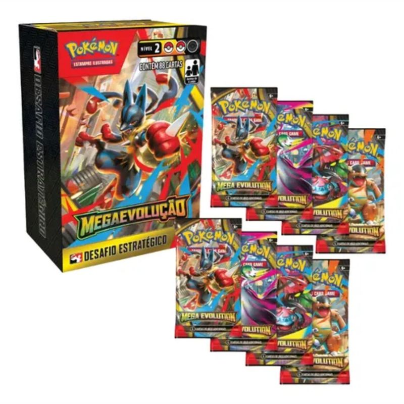 Desafio Estratégico Megaevolução ME01 Marca do produto: Copag. Coleção: Megaevolução - ME01. Conteúdo: - 1 baralho com 40 cartas pronto para jogar, incluindo 1 de 4 cartas laminadas promocionais! - 8 pacotes de booster de Megaevolução do Pokémon Estampas Ilustradas! - 1 guia com dicas de construção de baralho. - 1 carta codificada para Pokémon Estampas Ilustradas Live. O poder da Megaevolução atinge um novo patamar! Pokémon de todos os tipos colocam tudo em jogo para demonstrar sua força e se tornar Pokémon ex de Megaevolução! Comande a aura impetuosa de Mega Lucario ex, acolha o poder transbordante de Mega Gardevoir ex e una-se a outros desses poderosos Pokémon, que esbanjam ataques devastadores e PS fora da curva. Mas muito cuidado com sua estratégia, já que mais poderes sempre trazem mais riscos! Escolha seus parceiros Pokémon e prepare-se para as maiores batalhas que você já travou na expansão Megaevolução do Pokémon Estampas Ilustradas! Item lacrado de fábrica. Idioma: Português Brasileiro