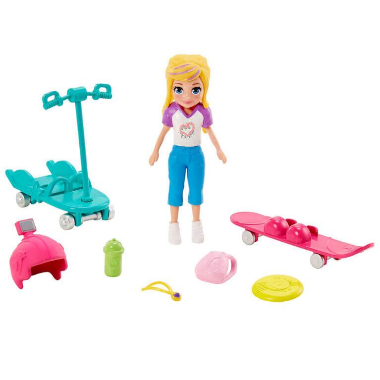 Boneca Polly Pocket Atividades de Verão - Polly / Lila A Polly Pocket™ Atividades de Verão inclui o conjunto Vida ao Ar Livre da Polly™ ou o Quiosque de Sorvete da Lila™ (cada produto é vendido separadamente, sujeitos a disponibilidade). A Polly™ mede 8 cm de altura, usa uma linda roupa e está pronta para cair na estrada com o conjunto Vida ao Ar Livre da Polly™ com patinete, skate, mochila, capacete, garrafa de água e um frisbee. A Lila™ mede 8 cm de altura, está pronta para se refrescar com as delícias do conjunto Quiosque de Sorvete da Lila™, que vem com um carrinho de sorvete com toldo, caixa registradora, 2 sundaes e 1 casquinha de sorvete. Indicado para 04+