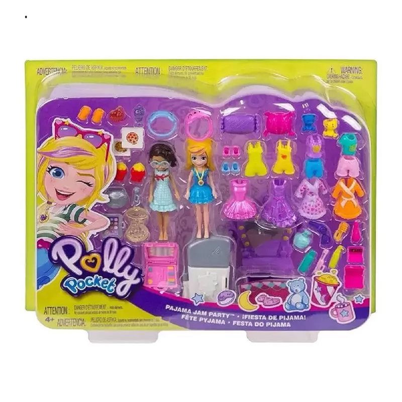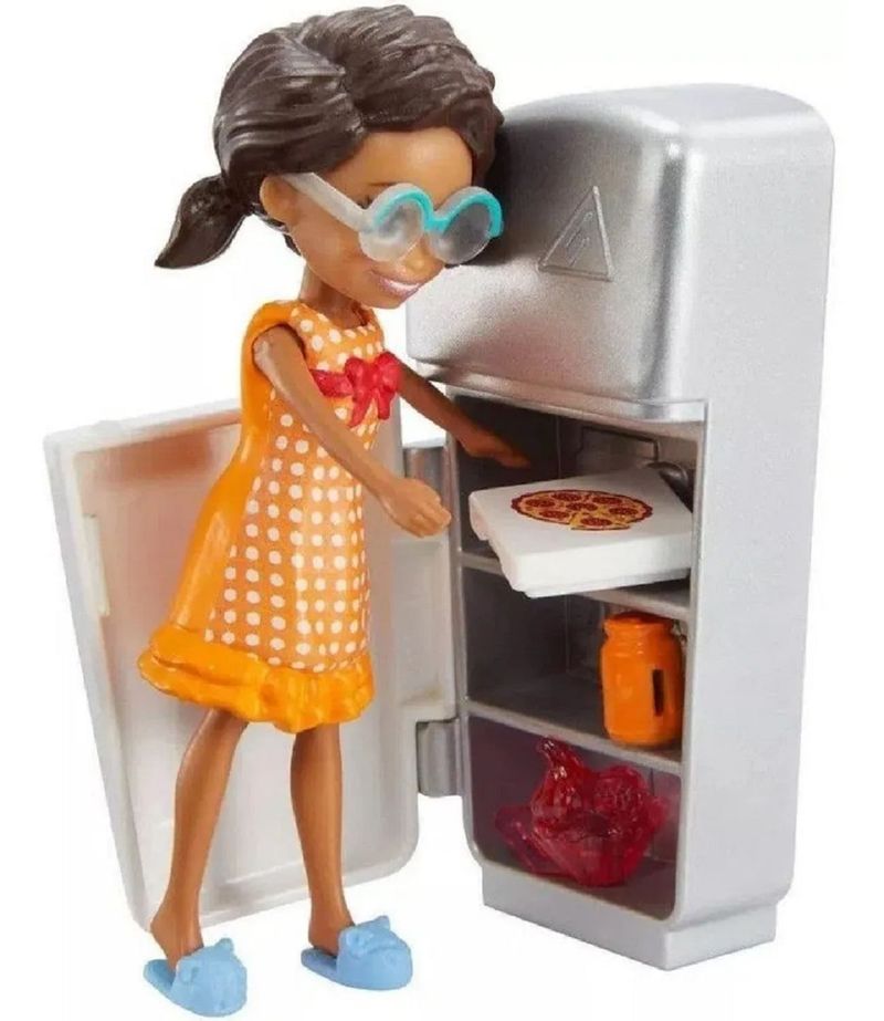 Vem com muitos acessórios com tema de pijama. Inclui pizza e lanche para o jantar, laptop para navegar na internet, kit de maquiagem, microfone para animação musical e acessórios de pijama que podem ser combinados com diferentes combinações.