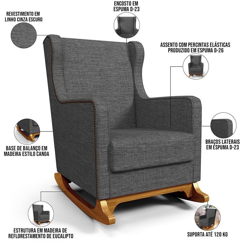 Projetada para oferecer conforto e praticidade em um dos mais momentos mais ublimes da maternidade, a Poltrona de Amamentação com Balanço Mavie, da Lyam Decor, é a esccolha perfeita já que combina um design moderno com uma experiênica inigualável de bem-estar. Isso graças aos materiais de qualidade que compõem a sua estrutura, como a madeira de eucalipto tratada e os pés balanço estilo canoa, que proporciona estabilidade e segurança. Além disso, o assento é tapeçado com espuma D-26 e o encosto e braças D-23, garantem uma amamentação tranquila e aconchegante, tanto para mãe quanto para o bebê.