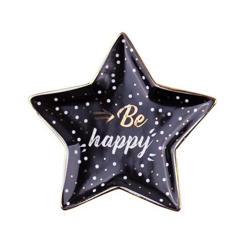 Porta Anel Estrela Cerâmica Be Happy - Art House Informações do Produto: Ideal para guardar anel, pequenas joias, bijoux, e outros objetos pequenos. Em cerâmica com detalhes em dourado, este lindo porta anel vai ficar perfeito na sua casa. Este item além de lindo traz sua personalidade e seu gosto à decoração e organização do ambiente, deixando cada cantinho com seu próprio charme. Itens inclusos: 1 porta anel em formato de estrela. Dimensões aproximadas do produto: AxL 9,5cm x 10,5cm. Recomendado: Não recomendado para crianças menores de 04 anos. Alimentação: Não necessita. Material composição: Cerâmica. Certificação: Produto original e licenciado. Garantia do Fabricante: 03 meses contra defeitos de fabricação. Aviso: Todas as informações divulgadas são de responsabilidade exclusiva do fabricante/fornecedor. As cores dos tecidos ou dos produtos podem variar entre as imagens mostradas acima ou fotos da embalagem. Imagens meramente ilustrativas.