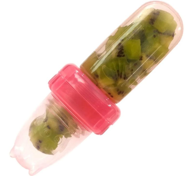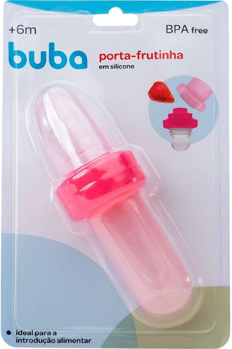 O Porta-Frutinha da Buba é ideal para introduzir frutas e legumes ao bebê. Possui recipiente em silicone macio, perfeito para o pequeno apertar, estimulando a autoalimentação. O bico, também em silicone macio, é sensível à pressão e libera o conteúdo na quantidade ideal. É desmontável para facilitar a limpeza e acompanha tampa protetora para guardar e trannsportar com higiene.
