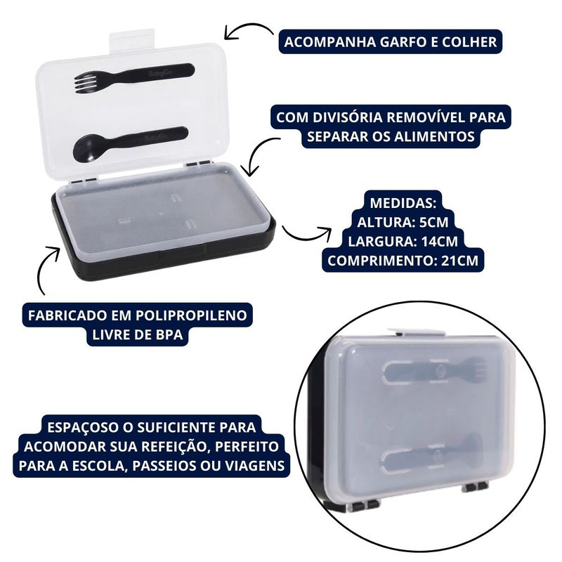 Espaçoso o suficiente para acomodar sua refeição, perfeito para a escola, passeios ou viagens. Estampa Preto que traz um toque de alegria e personalidade a sua refeição.