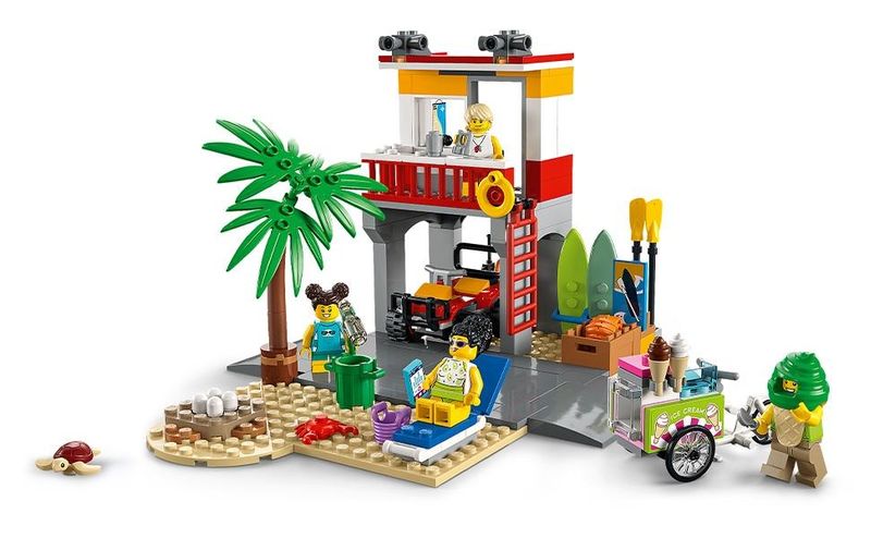 Está um dia ensolarado na praia. Compre uma delícia refrescante no vendedor de sorvetes de traje divertido ou pegue um colete salva-vidas e vá praticar stand-up paddle... mas tenha cuidado com o caranguejo! Depois ajude a limpar a praia onde uma tartaruga marinha está fazendo seu ninho, antes de ir para o posto salva-vidas onde encontrará um espetacular veículo off-road e muitos equipamento incríveis para manter os banhistas da LEGO® City em segurança! Idade recomendada: 5+; Composição/Material: Plástico; Brinquedo depende de pilhas: Não; Brinquedo com luz: Não; Brinquedo com som: Não; Dimensões da embalagem: 28x26x6 cm; Peso: 0,84 kg; Código de Barras: 0673419359382; Garantia do Fornecedor: 3 Meses contra defeito de fabricação;
