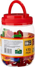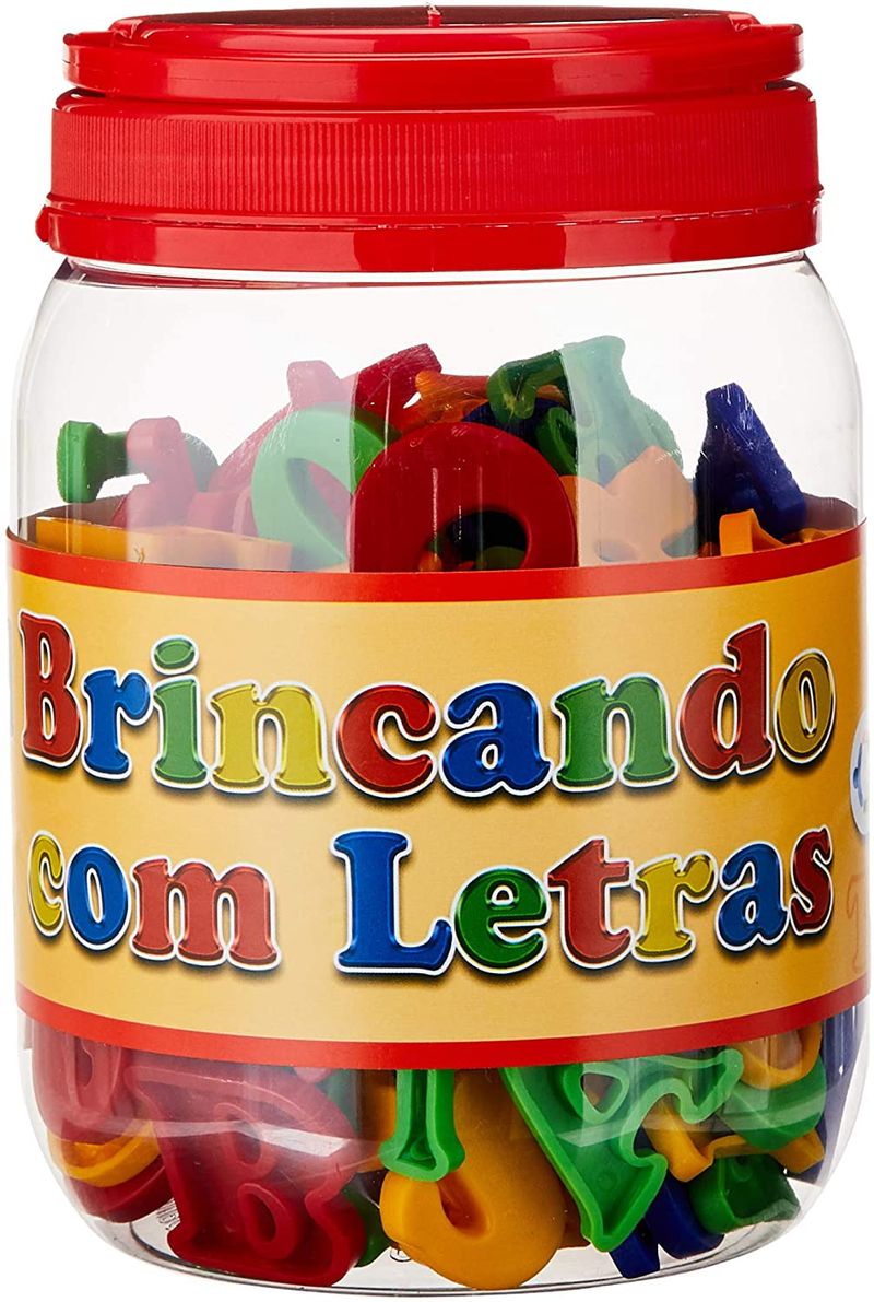 - Conteúdo: Pote plástico com 173 peças (letras) plásticas coloridas