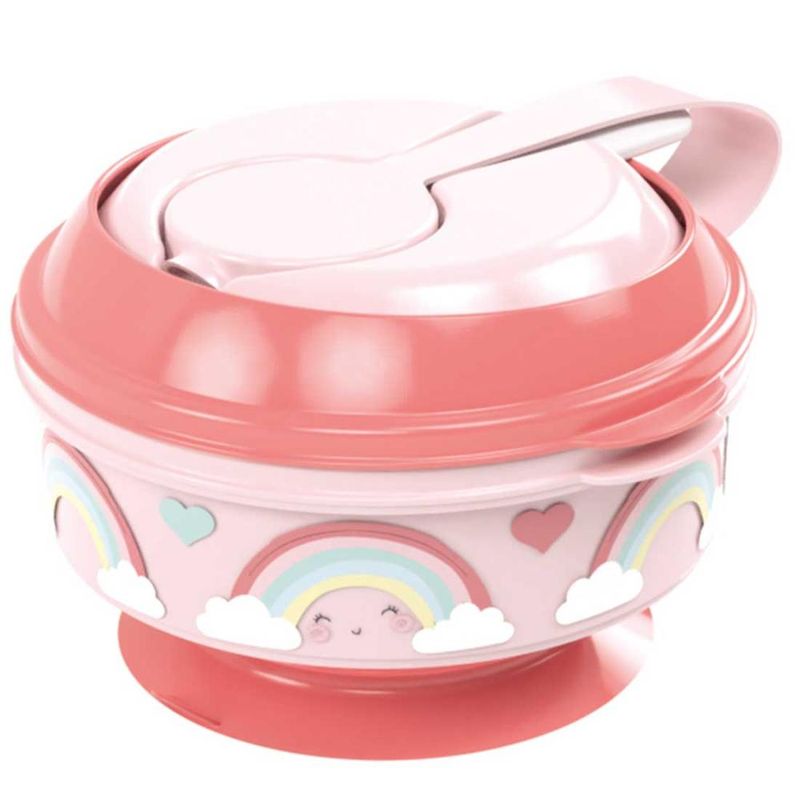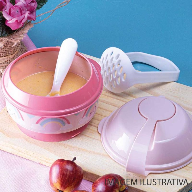 Pote papinha com amassador e colher 300ml Arco-Íris Rosa