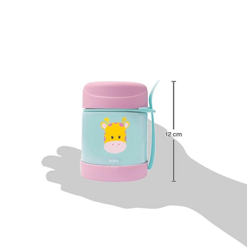 O Pote Térmico Animal Fun Girafa da Buba acompanha talher e é ideal para refeições fora de casa, pois ajuda a conservar a temperatura dos alimentos (quente ou fria) por ate 5 horas. Pode ser utilizado para armazenar papinhas, frutas e legumes. Produzido em aço inoxidável com parede dupla, é resistente e higiênico. Perfeito para levar em passeios e viagens.