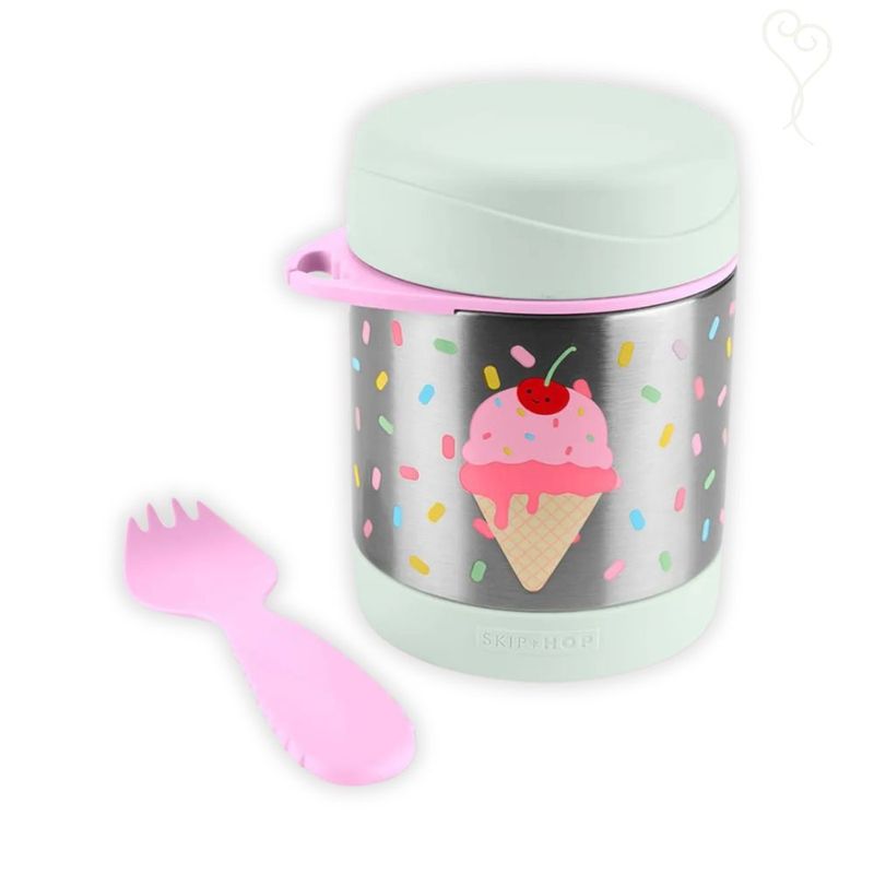 O Pote Térmico com Talher Spark Style Arco-Íris da Skip Hop mantém os alimentos quentes por 7 horas ou frios por 5 horas. Com capacidade de 325 ml, é ideal para levar alimentos frescos para os nossos pequenos durante os passeios ou para o lanche da escola. Feito de aço inoxidável, vem com o suporte de talher embutido. ESPECIFICAÇÕES: