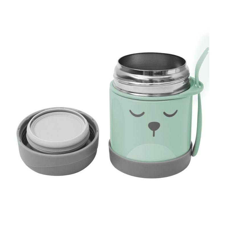 O Pote Térmico Gumy da Buba acompanha talher e é ideal para refeições fora de casa,