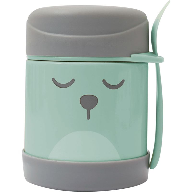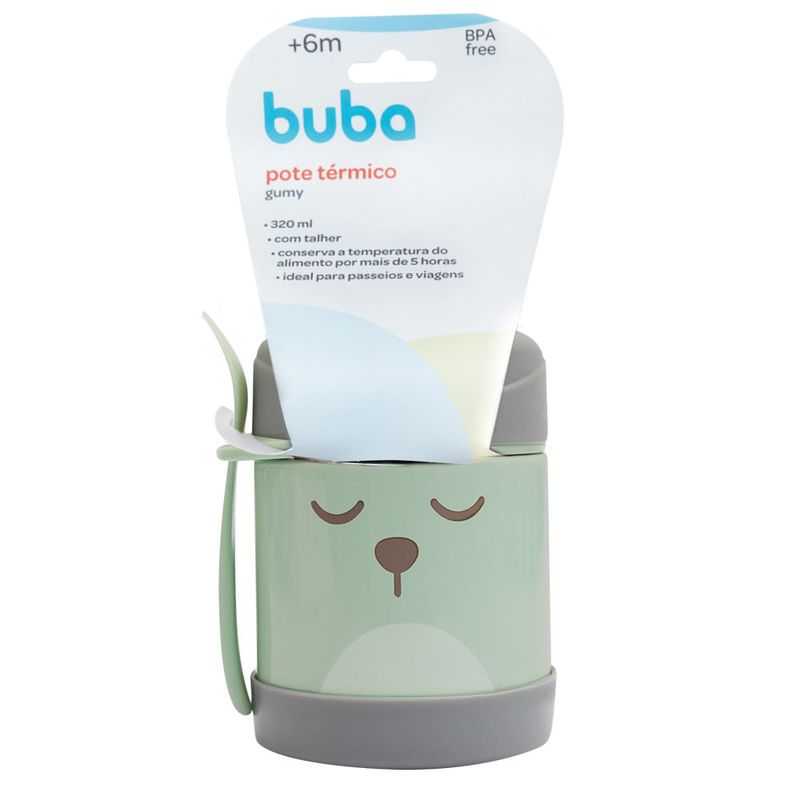 O Pote Termico Gumy da Buba acompanha talher e e ideal para refeicoes fora de casa, pois ajuda a conservar a temperatura dos alimentos (quente ou fria) por ate 5 horas. Pode ser utilizado para armazenar papinhas, frutas e legumes. Produzido em aco inoxidavel com parede dupla, e resistente e higienico. Perfeito para levar em passeios e viagens. Medidas: Pote: 13 x 9 x 9 (AxLxP) cm Talher: 12 x 3 x 1,5 (AxLxP) cm