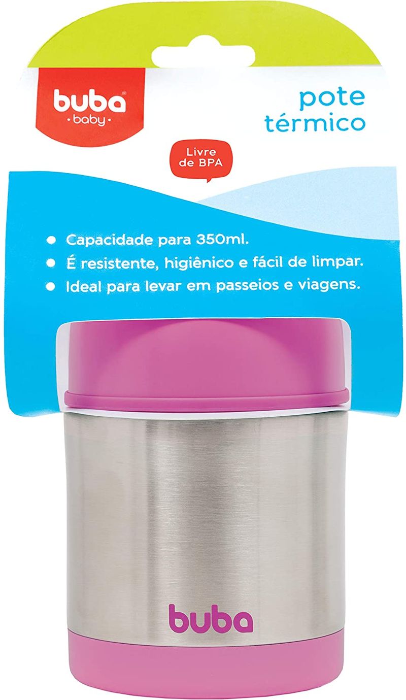 O Pote Térmico veio para facilitar a vida dos pequenos. O momento da refeição do seu pequeno é muito importante, e por isso a Buba desenvolve materiais de ótima qualidade para tornar essa hora o mais agradável possível. É feito em aço inoxidável, e vem com uma colher super fofa. Contém: 1 Pote Térmico de 350ml. Idade: Acima de 6 meses.