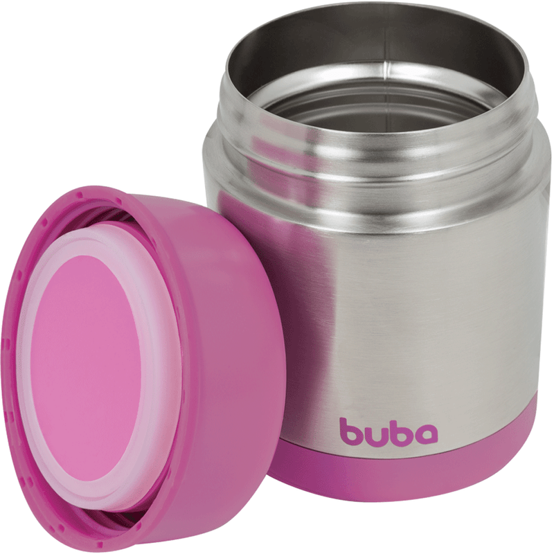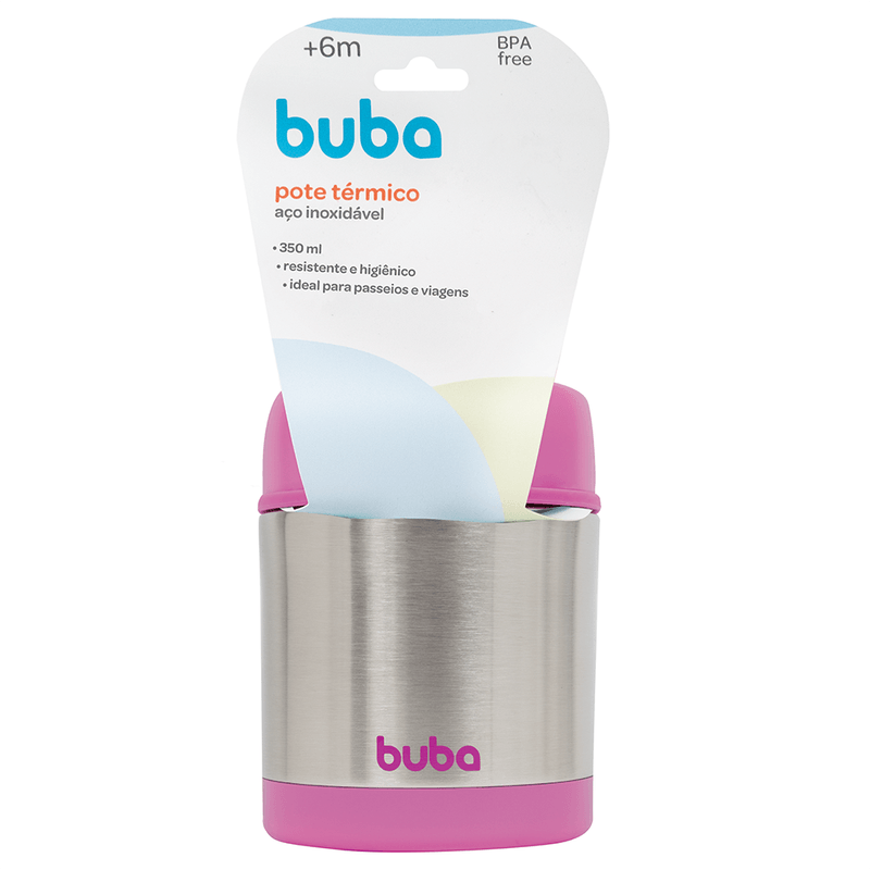 O pote térmico inox Buba veio para facilitar a vida dos pequenos no momento da refeição. Possui capacidade para 350ml, feito em aço inoxidável no interior e exterior, mantém a temperatura quente ou fria dos alimentos por mais tempo. Tampa a prova de vazamentos com grip macio para fácil abertura e boca larga que facilita a entrada e a retirada da comida. E ainda é resistente, higiênico e fácil de limpar.