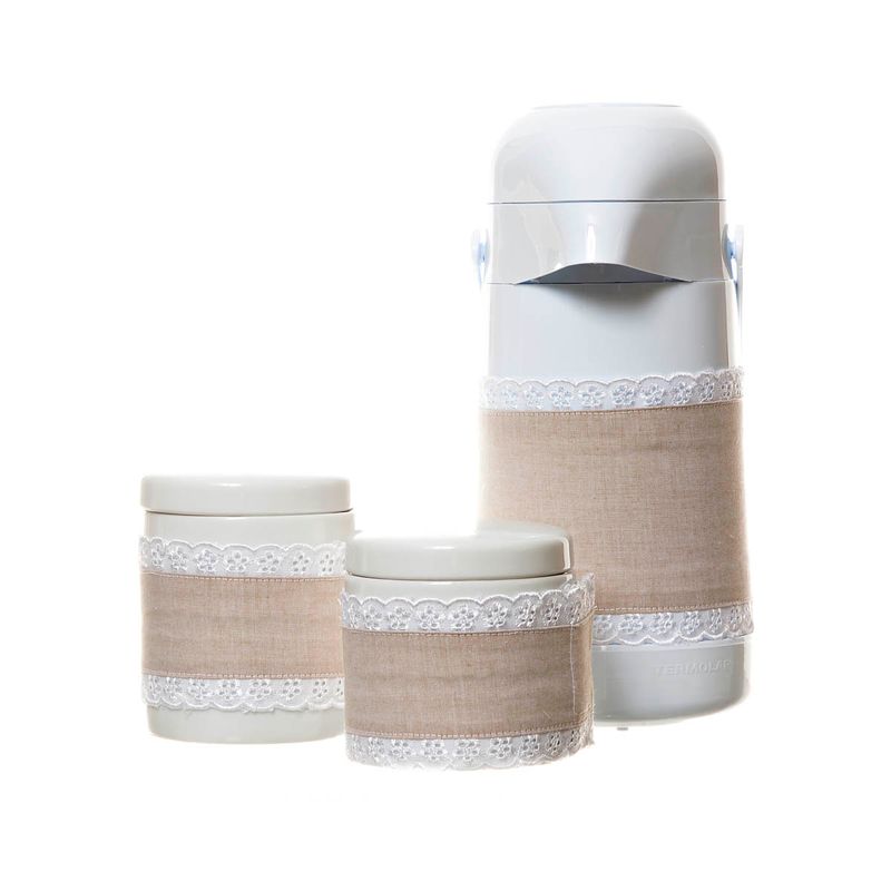 Potes E Garrafa Com Capa Bege (Conj. 3 Peças)