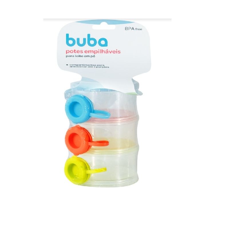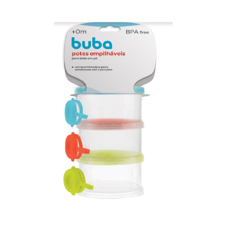 Conteúdo da embalagem: 3 Potes Empilháveis para Leite em Pó Buba