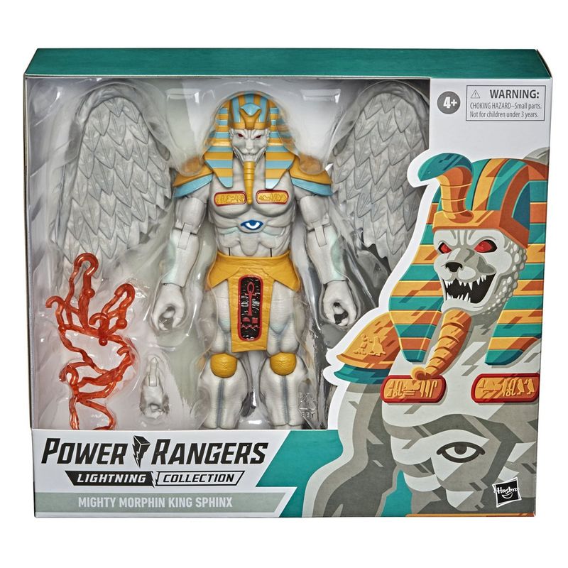 Esta figura de monstro King Sphinx da coleção Lightning de 8 polegadas apresenta pintura premium e detalhes decorativos inspirados no show, mais de 20 pontos de articulação para alta poseabilidade, inclui asas fixáveis, acessório Sphinx Scepter , acessório de efeito de explosão de energia e um par extra de mãos para mais formas de jogar ou exibir. Vai Vai Power Rangers!