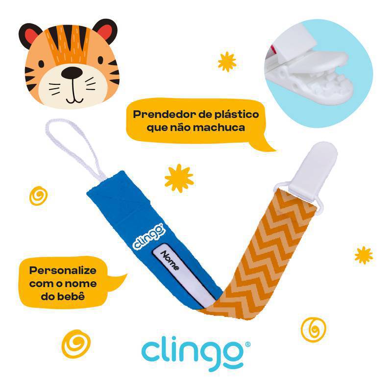 BABYCHUPETASPrendedor de Chupeta - Coleção Tigre - Azul e Laranja - Clingo