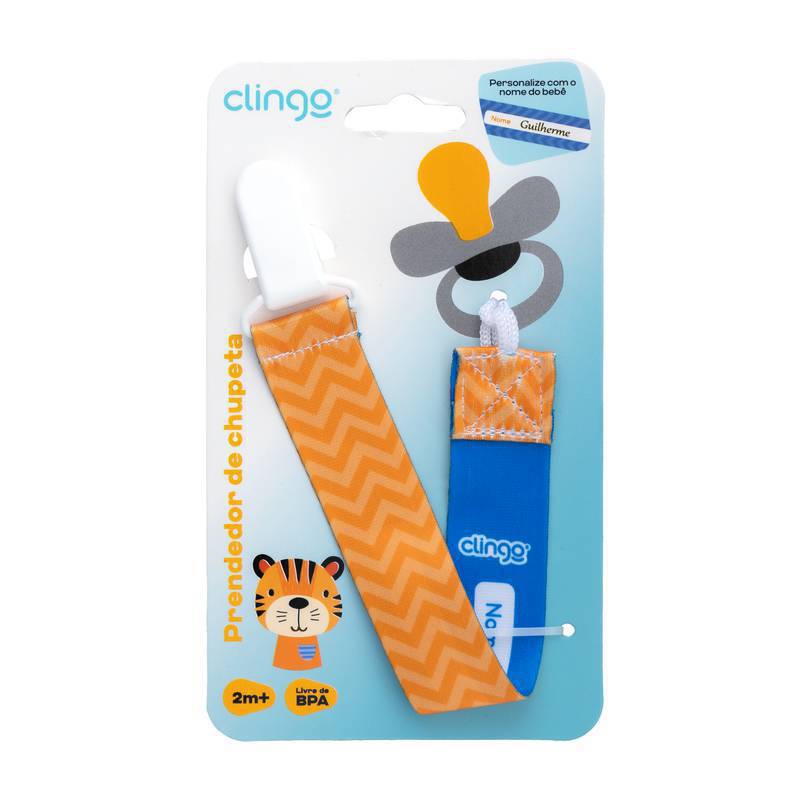 Prendedor de Chupeta - Coleção Tigre - Azul e Laranja - Clingo