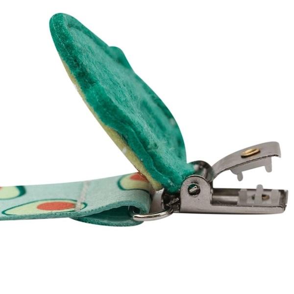 O Prendedor de Chupeta Frutti da Buba permite que a chupeta fique sempre presa de modo seguro e prático através do clipe de prender.