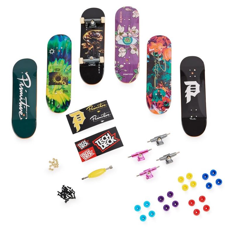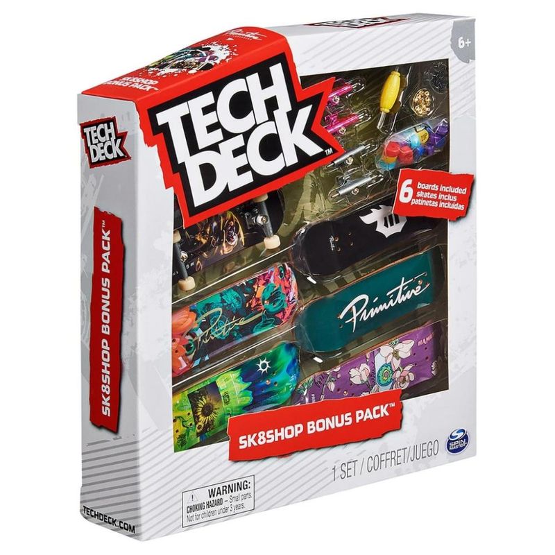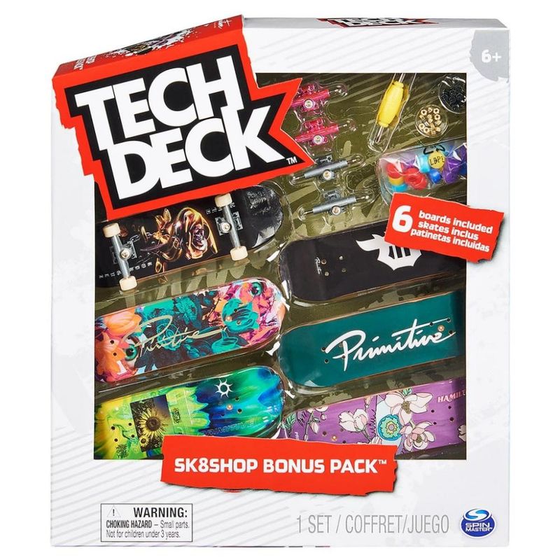 Pack com 6 shapes incríveis com ilustrações legítimas das maiores marcas de skate do mundo! Construa e personalize seus mini skates completos da maneira que você quiser com: shapes, rodinhas, adesivos, ferramentas e muito mais. Aprenda novos truques ou invente você mesmo os seus próprios truques, crie e se divirta!