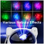 O Projetor de Estrelas Astronauta cria nove incríveis efeitos de nebulosa, acompanhados por estrelas verdes respirantes, trazendo uma atmosfera pacífica e relaxante para quartos ou quartos infantis. Com o controle remoto, ajuste o brilho, velocidade de rotação e taxa de respiração conforme desejar, além de programar o timer para 45 ou 90 minutos. Design ajustável que simula um astronauta, com ângulo de projeção da nebulosa ajustável, base removível e braço posável. Perfeito para quartos, salas de jogo, teatros caseiros, decoração de escritório, proporcionando uma atmosfera única para noites especiais. Um presente incrível para crianças e adultos em datas especiais como Natal e aniversários. Não deixe de ter essa linda luminária galáctica em sua vida!