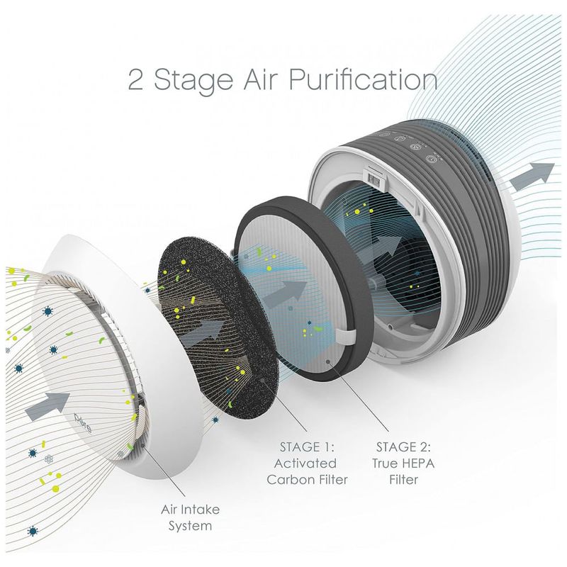 PURIFICAÇÃO DO AR EM 2 ESTÁGIOS Limpe e desinfete o ar de 99,97 de poeira, pólen, pêlos de animais, fumaça e odores domésticos. Estágio 1 Pré filtro de carvão ativado Estágio 2 filtro HEPA verdadeiro