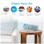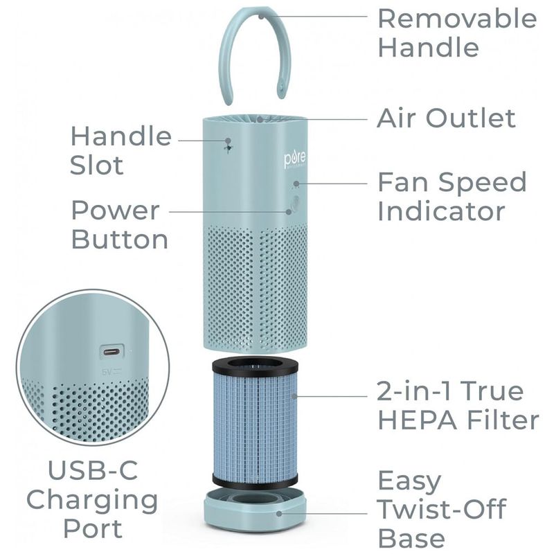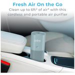IDEAL PARA VIAGENS este pequeno purificador de ar em movimento mantém seu espaço pessoal limpo por até 12 horas dependendo da velocidade do ventilador com uma bateria recarregável de íons de lítio. No seu destino final, conecte o para obter um ar mais fresco