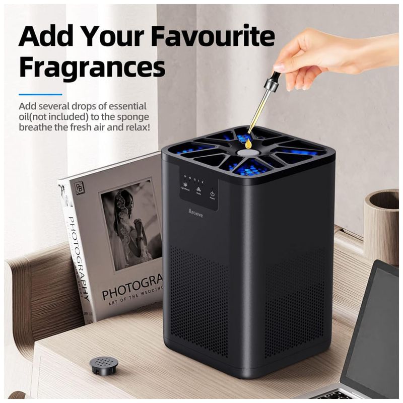 Filtros Partículas de 0,3 mícrons O purificador de ar AROEVE usa filtros H13 True HEPA que atendem aos padrões de ar particulado de alta eficiência HEPA . Ele filtra 99,97 das partículas transportadas pelo ar maiores que 0,3 mícrons, como fumaça, pólen, pêlos, cabelos e odores. Ligue o purificador para melhorar a qualidade do ar interno e desfrutar de uma vida saudável.