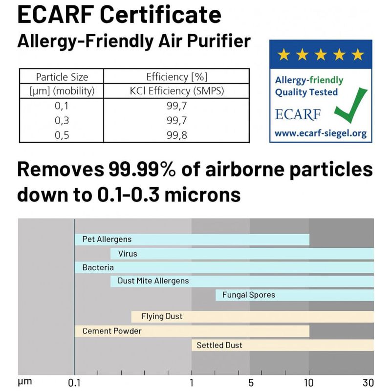 Filtros de ar HEPA H13 Verdadeiro Certificados pelo terceiro laboratório de testes para capturar e remover o vírus H1N1 a 99,99 até 0,1 mícrons. Os filtros de 3 estágios limpam o ar de maneira dupla e dupla. O pré filtro prende o cabelo, pêlo de animal de estimação, fibra. O filtro H13 True HEPA remove alérgenos, fungos, pêlos de animais, poeira, vírus. O filtro de carbono do favo de mel absorve fumaça, odor de animais, VOC, cheiro de cozinha.