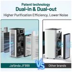 Tecnologia de patente de entrega de ar dupla e dupla saída JF999 purificador de ar Hepa doméstico Adote a mais recente tecnologia de patente de entrega de ar, equipada com dois ventiladores para fornecer o ar Dual in e Dual out, acelerar a circulação de ar. Maior eficiência de purificação, menor consumo de energia e menor ruído.