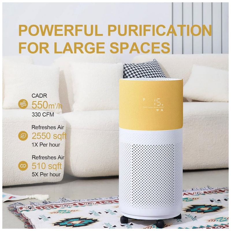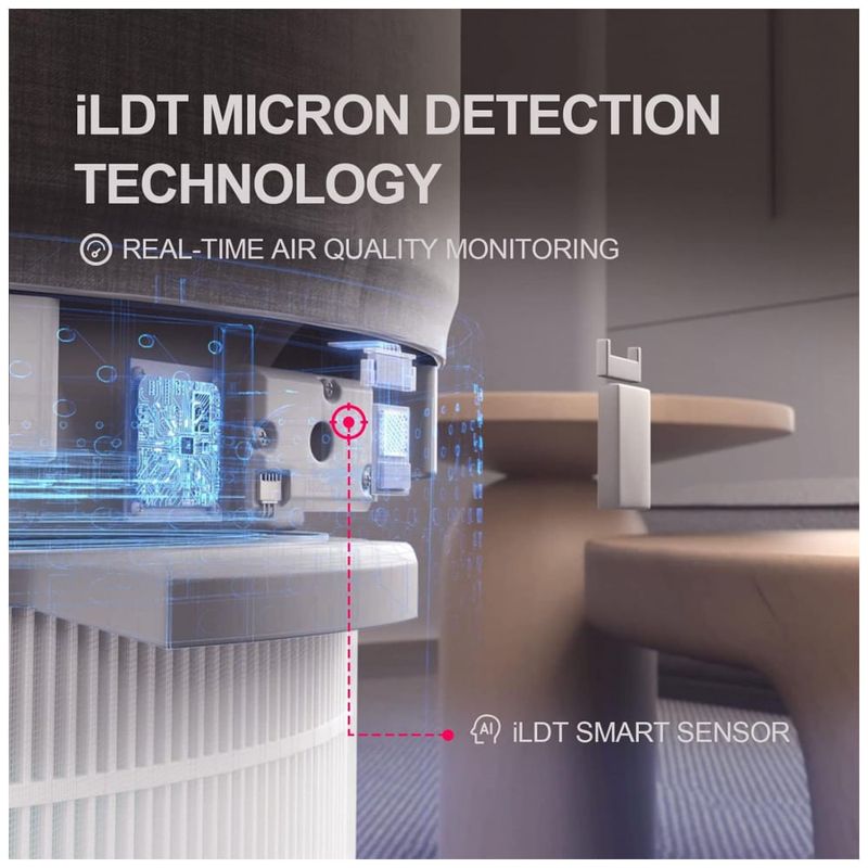 MONITORAMENTO DA QUALIDADE DO AR Nunca foi tão fácil monitorar a qualidade do ar interno, e nosso purificador de ar puro para salas grandes oferece leituras precisas em tempo real Apresentando uma tecnologia de detecção de mícron iLDT, este avançado purificador de ar limpo para casa detectará poluentes, mostrando as descobertas como indicadores de 3 cores no visor LED HD enquanto ajusta automaticamente a velocidade do ventilador para eficiência e economia de energia