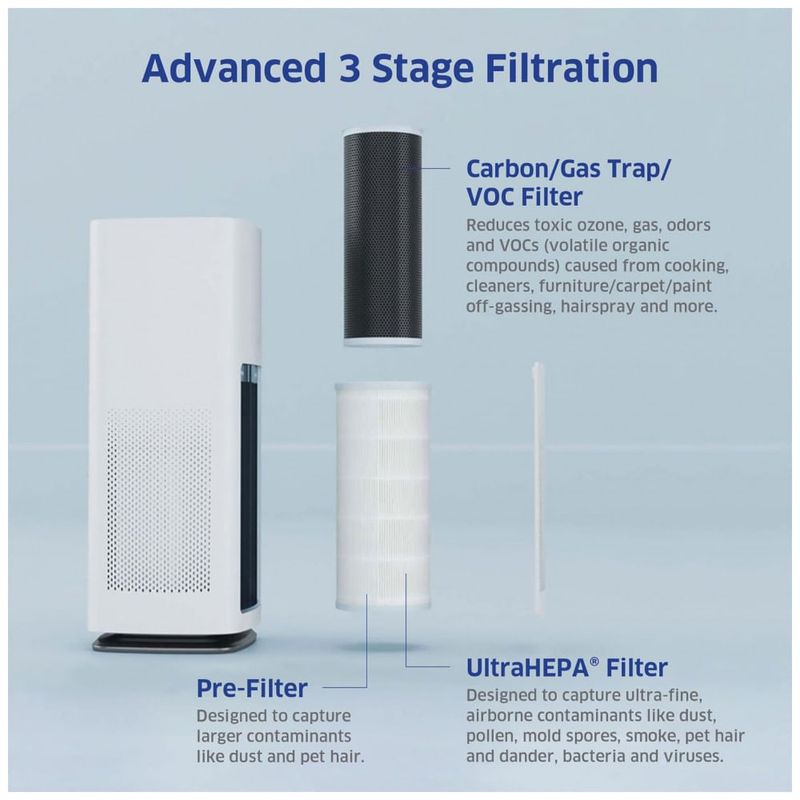 ALTO DESEMPENHO A filtragem em 3 estágios fornece outra camada de proteção ao ar que você respira. Com seu filtro UltraHEPA e filtro proprietário de carbono VOC compostos orgânicos voláteis de ação dupla, o filtro de ar AirDoctor 1000 remove alérgenos, pêlos de cachorro e outros produtos químicos orgânicos voláteis, como formaldeído.