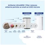 REMOVE PARTÍCULAS 100X MENOR DO QUE O PADRÃO HEPA Nosso filtro UltraHEPA é testado independentemente e comprovado para remover partículas transportadas pelo ar tão pequenas quanto 0,003 mícrons de tamanho.