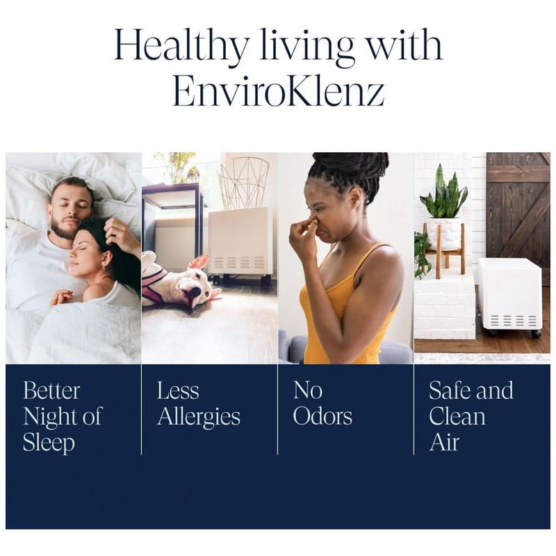 ELIMINE AS TOXINAS TRANSPORTADAS PELO AR A tecnologia patenteada usada no EnviroKlenz neutraliza as toxinas transportadas pelo ar e as destrói com segurança. Sem ozônio e sem gases apenas um alívio para sua família e sua casa.
