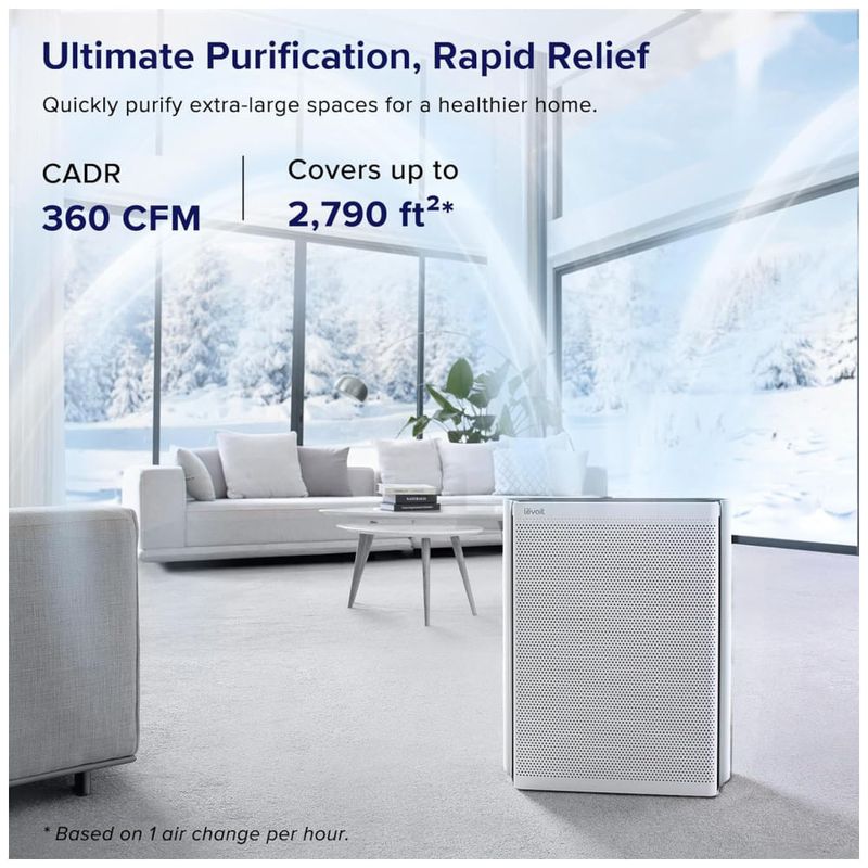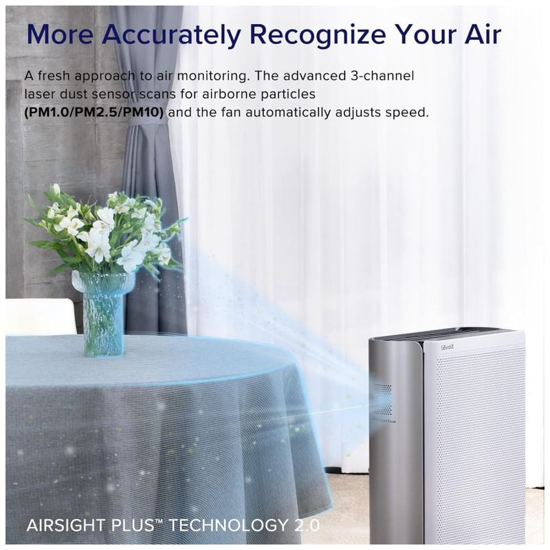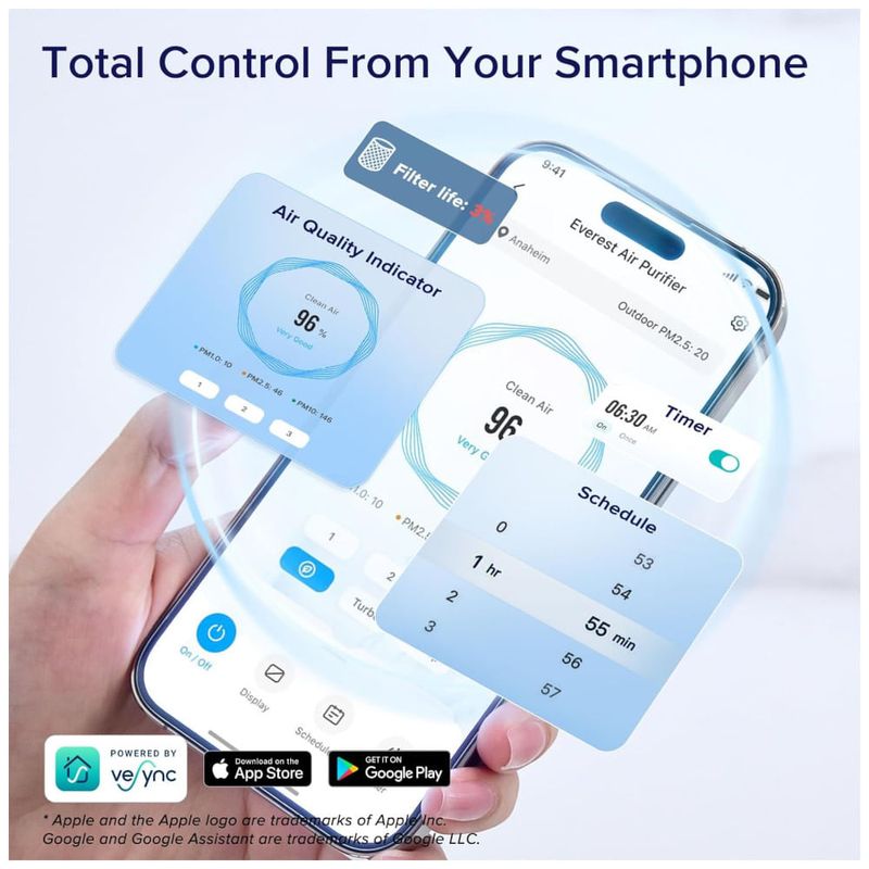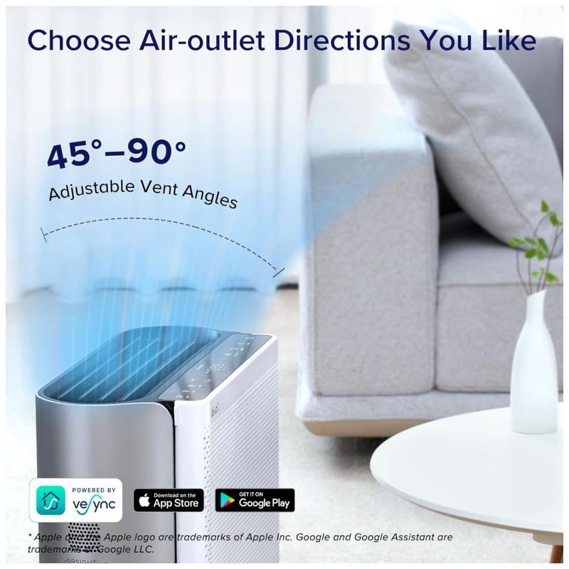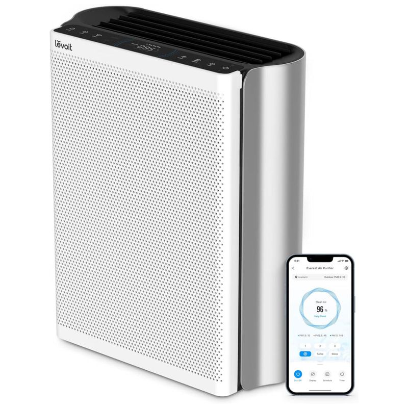 O EverestAir é um sistema de circulação de ar com um design exclusivo de duto de ventilação e um grande ventilador, que purifica rapidamente o ar em salas maiores. Com ângulos de ventilação ajustáveis, ele pode trazer ar fresco para qualquer espaço interno. Com uma poderosa taxa de fornecimento de ar limpo de 360 CFM, o EverestAir pode filtrar completamente 169,6 metros quadrados 5 vezes por hora e 848,02 metros quadrados 1 vez por hora com a filtragem EverestAir ANTIALLERGENS ODORS Premium de 3 estágios. O sistema inclui um pré filtro lavável, filtro intermediário eficiente e filtro de carbono de ativação eficiente. O EverestAir também possui um sensor de luz silencioso com níveis de ruído tão baixos quanto 24,0 DB e um sensor de poeira a laser de três canais que detecta tamanhos de partículas PM1, PM2.5 e PM10 e atualiza a tela com leituras de qualidade do ar em tempo real. Com o aplicativo VeSync gratuito, você pode controlar as configurações do EverestAir de qualquer lugar, criar programações, visualizar a qualidade do ar em tempo real e conectar se a assistentes de voz de terceiros. O EverestAir vem com um pré filtro lavável, tornando a manutenção mais econômica e minimizando o impacto ambiental. O design do EverestAir é inspirado no Monte Everest e equilibra funcionalidade prática com estética elegante. Use apenas peças de reposição genuínas Levoit para manter o melhor desempenho.