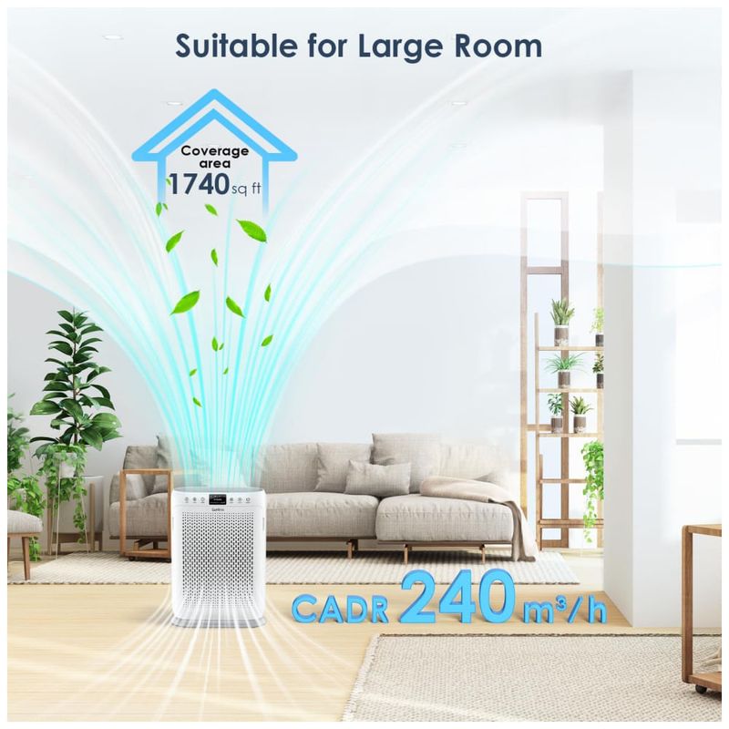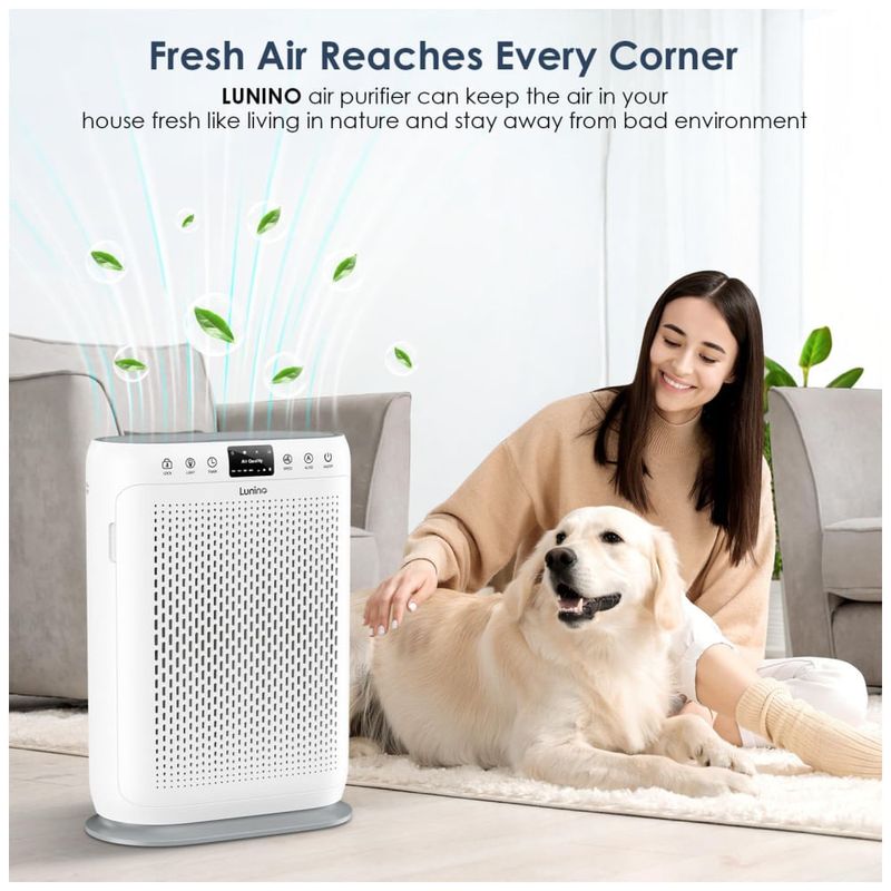 O Purificador de Ar HEPA LUNINO H13 é altamente eficiente na remoção de poluentes do ar, como pelos de animais, fumaça, partículas PM 2,5 e odores indesejados. Com uma área de cobertura de até 162 m², ele é perfeito para usar em quartos, salas de estar, escritórios, berçários, porões e cozinhas.