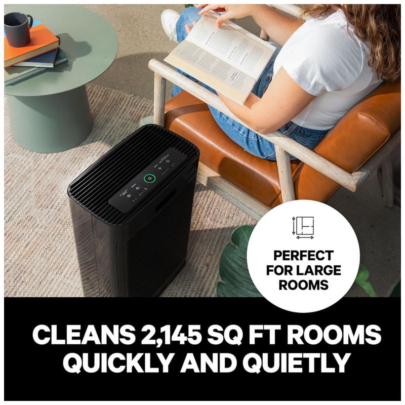 O purificador é certificado por CARB, ETL, ISO, UL e Energy Star, garantindo sua eficácia na remoção dos poluentes domésticos mais comuns. Um sensor de partículas inteligente monitora constantemente a qualidade do ar e ajusta automaticamente a potência quando detecta ar poluído.