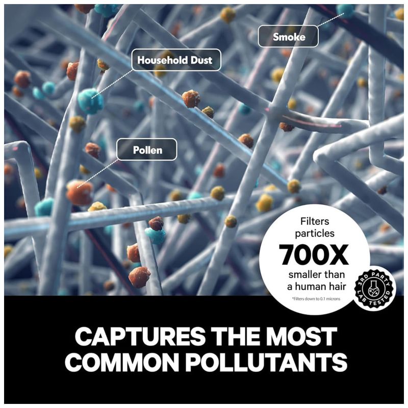 Este purificador de ar é ideal para residências e escritórios de até 200m2. Equipado com o filtro HEPA PuroAir, ele é altamente eficiente na captura de partículas indesejadas, como poeira, pólen, fumaça e compostos orgânicos voláteis (VOCs). Testes de laboratório independentes mostram que o filtro captura até 99% das partículas comumente encontradas em ambientes internos, incluindo aquelas tão pequenas quanto 0,1 mícron.
