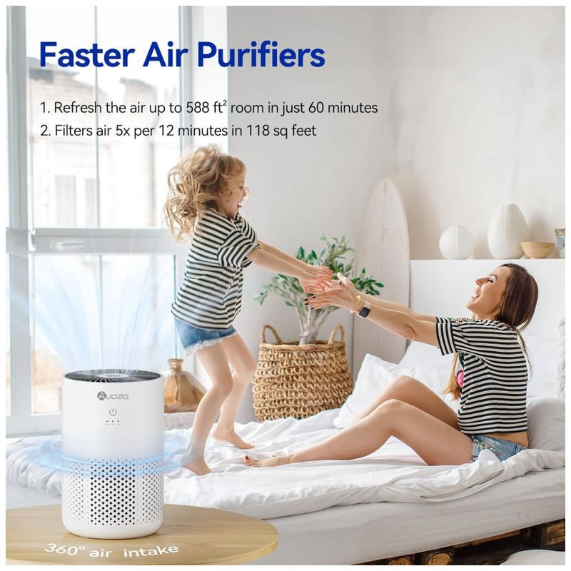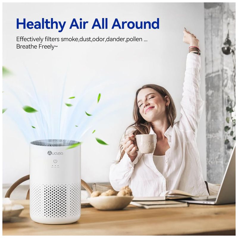 Este purificador é capaz de purificar rapidamente o ar em ambientes de até 54m², filtrando eficazmente impurezas e alérgenos como fumaça, pelos de animais de estimação, poeira, pólen e odores. Ele consome apenas 5W de potência, sendo altamente eficiente em termos de energia, funcionando 24 horas por dia e custando apenas 0,75W por semana.
