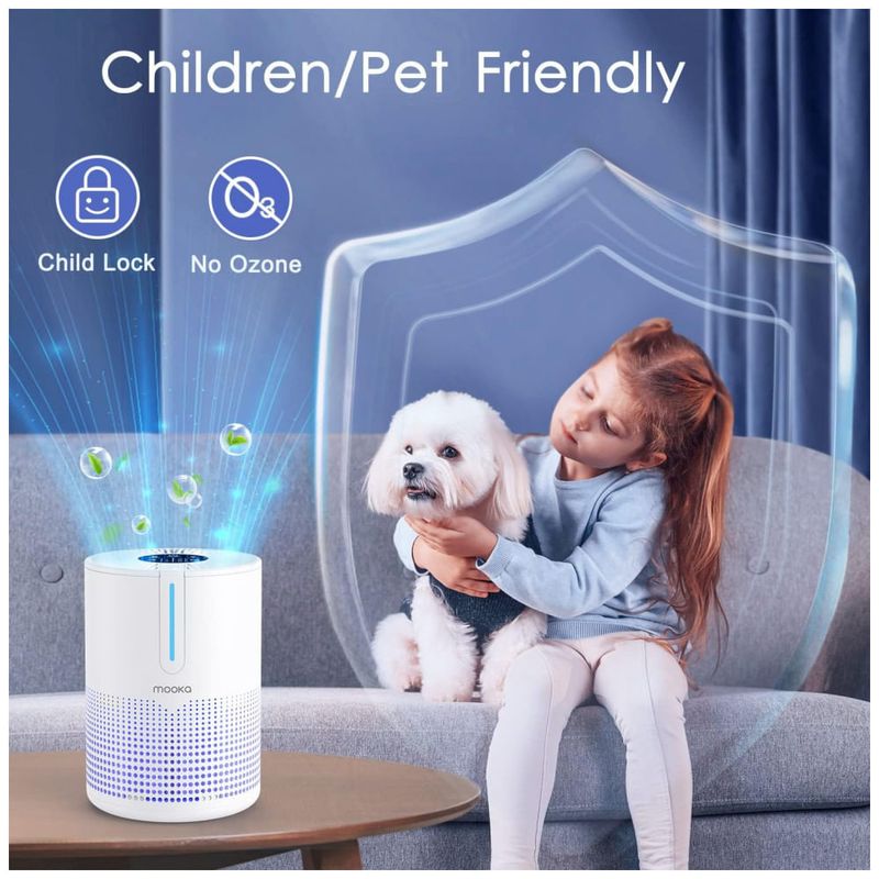 FILTRO HEPA H13 DE ALTO DESEMPENHO: O purificador de ar MOOKA para alergias com os filtros H13 True HEPA pode remover efetivamente poeira, fumaça, pólen e pêlos. Este purificador de ar ambiente usa tecnologia avançada em espiral de ar e entrada e saída de ar de 360 graus, que podem refrescar o ar 5 vezes por hora em espaços de até 28 . Com um aumento de 25 na eficiência da purificação, proporciona um ambiente de vida mais saudável e confortável.