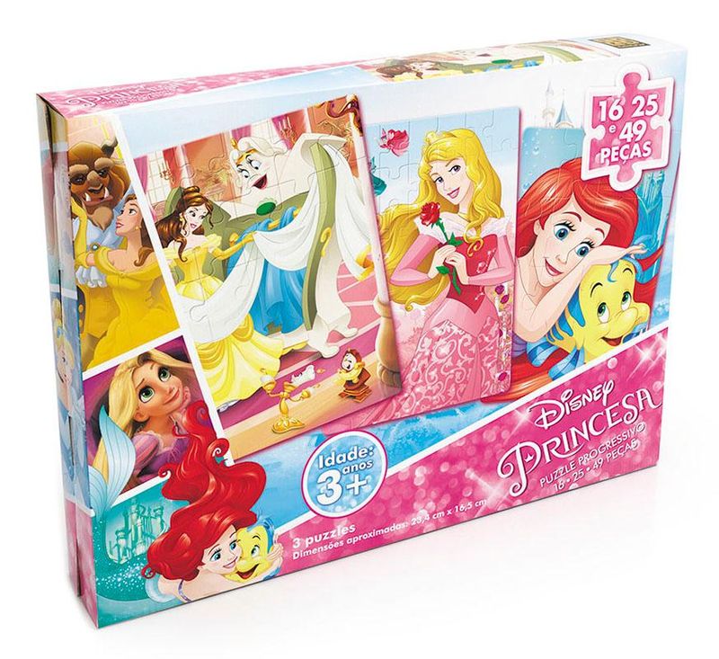 O Puzzle Progressivo traz na mesma caixa três quebra-cabeças diferenciados, em que as quantidades e os tamanhos das peças determinam níveis crescentes de dificuldade. As peças do verso também são diferentes, para facilitar a separação dos modelos. Inicie a montagem pelo quebra-cabeça de 16 peças. Assim a montagem das ilustrações de 25 e 49 peças vai lhe oferecer um desafio progressivo e atraente.