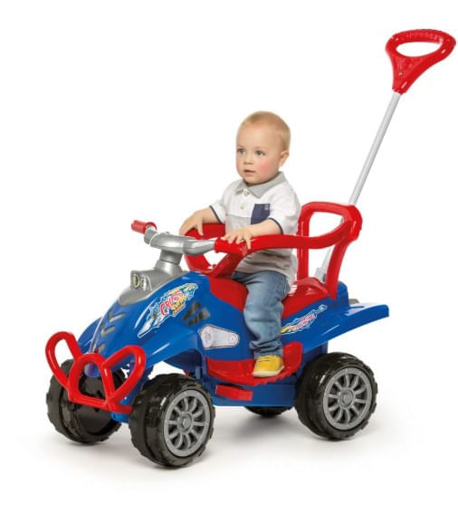 Com o aro protetor, apoio de pés e empurrador o Cross Turbo Calesita é um carro seguro e divertido para passear.