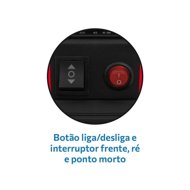 - Câmbio com duas marchas: frente e ré. botão liga/desliga para o produto.