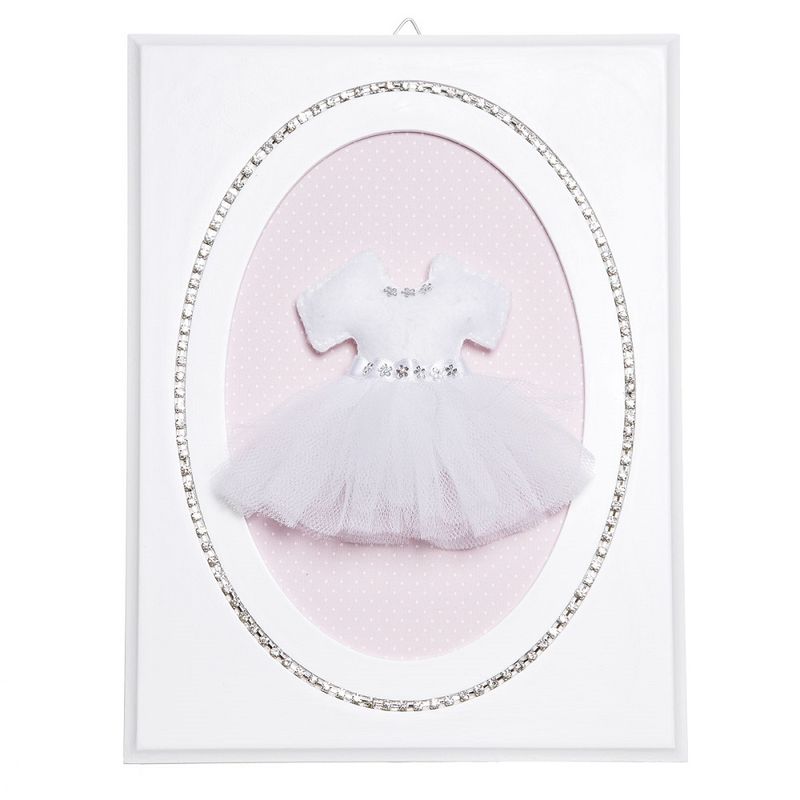 Quadrinho feito em madeira MDF com pintura laqueada, strass em volta e tecido de fundo.