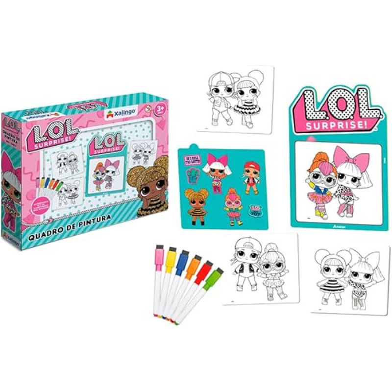 QUADRO DE PINTURA LOL - XALINGOÉ possível desenhar de forma livre e colorir as instruções quantas vezes quiser com as 06 cores de canetinhas, pois elas possuem apagador em cima da tampinha. Desenvolve a atenção, a coordenação motora e a percepção visual.